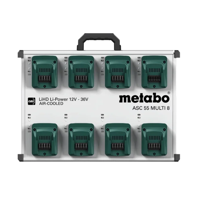 8-krotna moc: stacja ładująca z ośmioma miejscami do jednoczesnego ładowania, do wszystkich akumulatorów wsuwanych wszystkich klas napięcia (12 – 36 V)